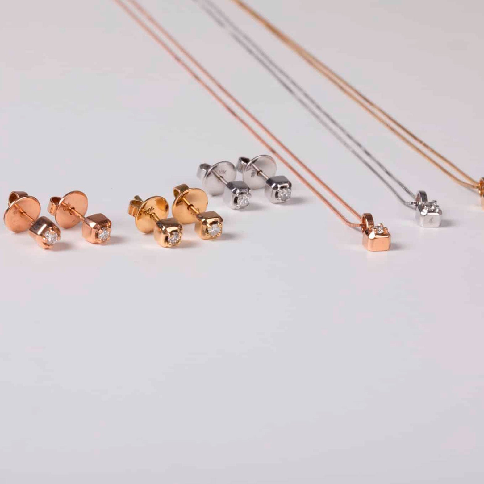 Aretes en oro de 18 kilates con incrustaciones de diamantes.