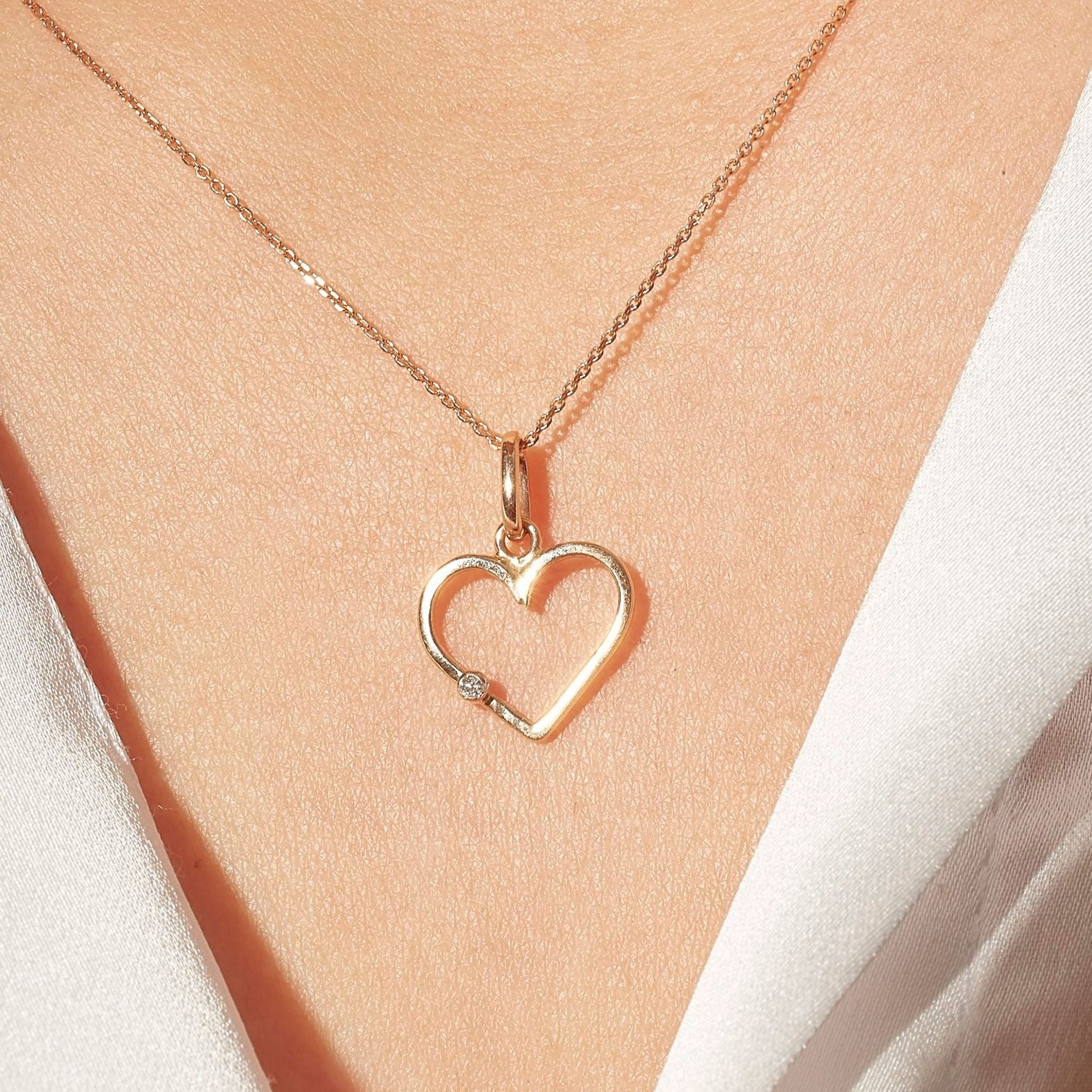 Incluye Dije en forma de Corazón con incrustación de Diamante y cadena en Oro Rosa de 18 Kilates.