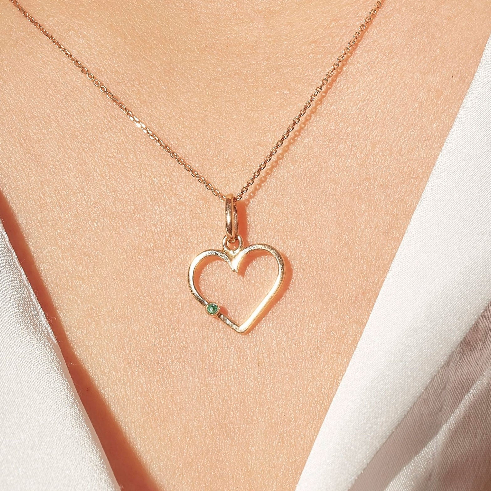 Incluye Dije en forma de Corazón con incrustación de Esmeralda y cadena en Oro Rosa de 18 Kilates.