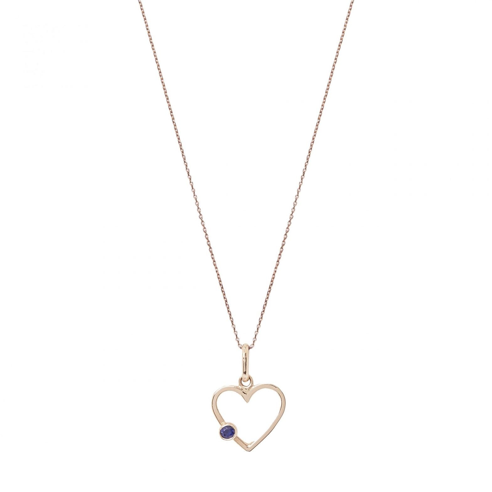 Incluye Dije en forma de Corazón con incrustación de Zafiro y cadena en Oro Rosa de 18 Kilates.